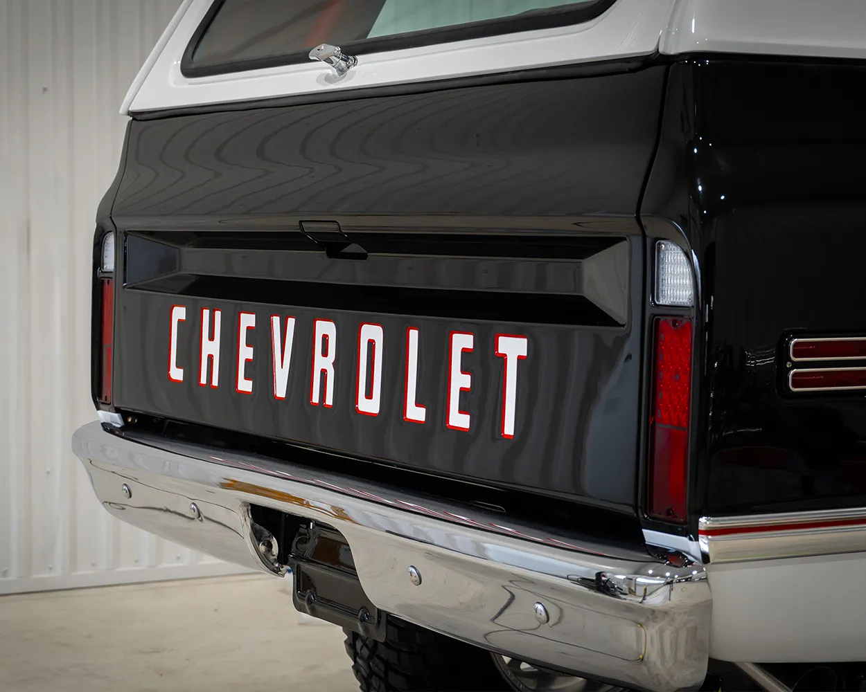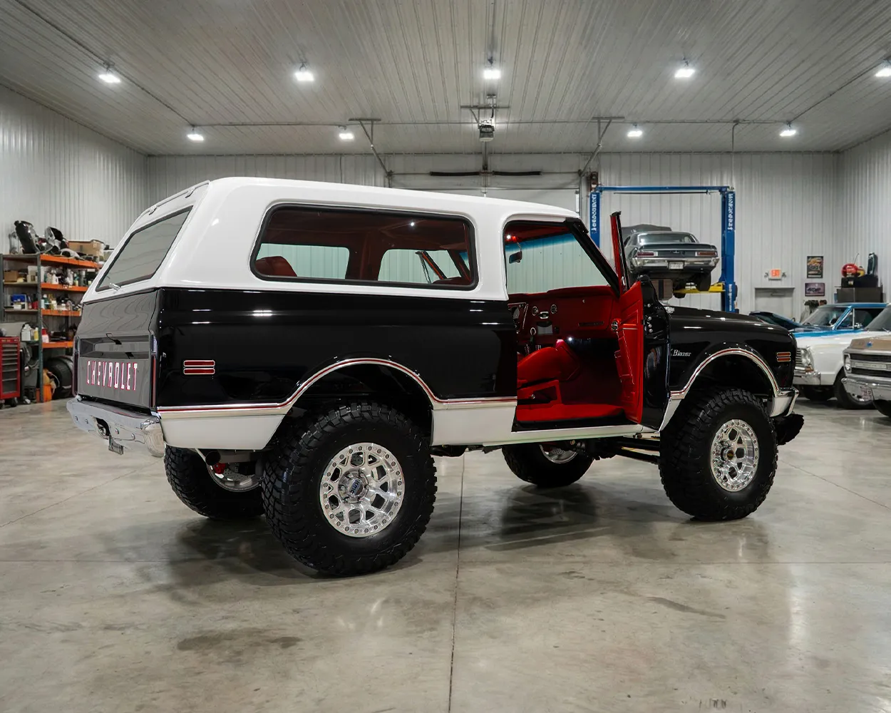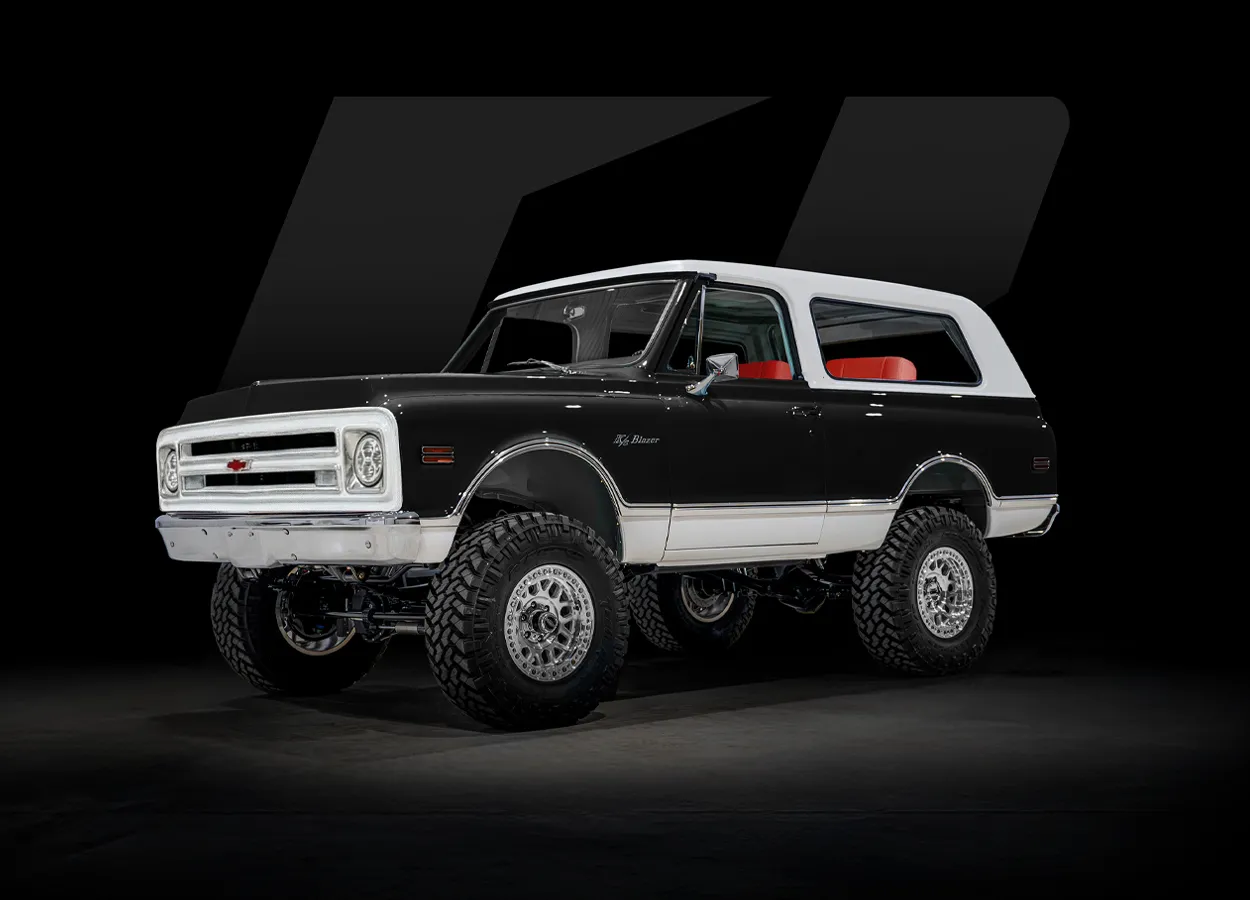 Step into a true black-tie driving experience aboard “TUX” — a flawlessly tailored 1969 Chevrolet K5 Blazer by Iconic Built, dressed for the occasion in a crisp Tuxedo Black and Porcelain White two-tone hardtop. Beneath the polished exterior lies no borrowed suit: a GM Crate L8P 6.6L V8 delivers a commanding 550 horsepower and 550 lb-ft of torque, ensuring TUX arrives with authority, not announcement. Supporting the performance is the Roadster Shop RS4 Chassis, providing modern poise, balance, and control worthy of a formal affair.